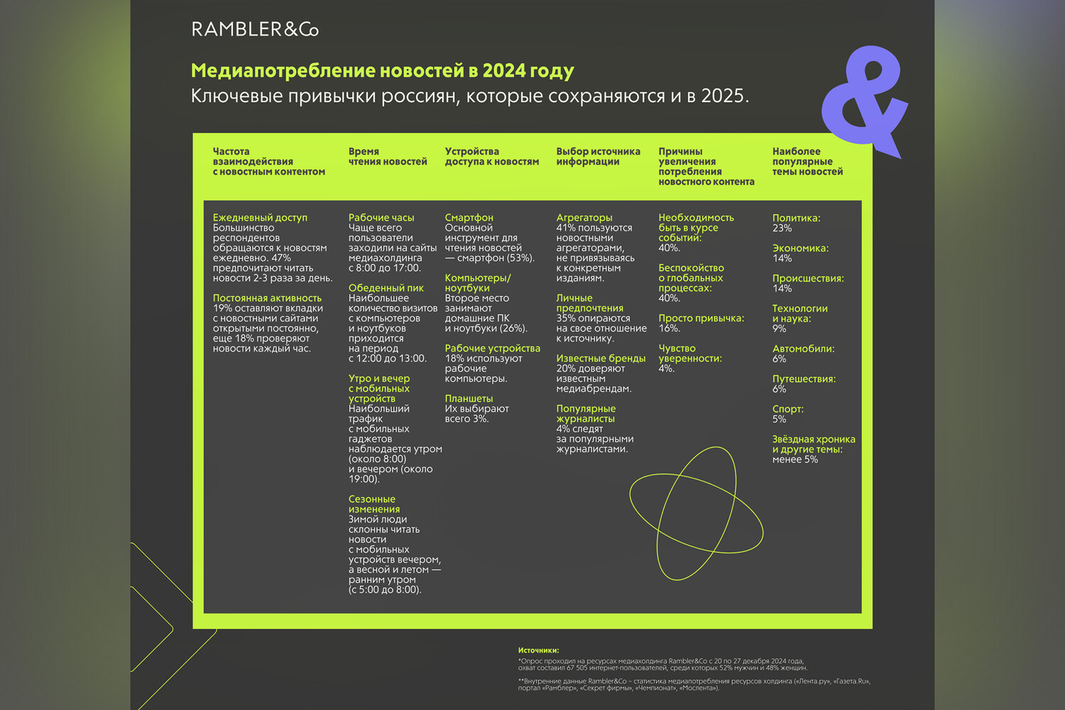 Пик активности читателей был зафиксирован осенью 2024 года. Увеличение количества просмотров и посещений новостных платформ холдинга началось в августе и достигло максимума в ноябре.