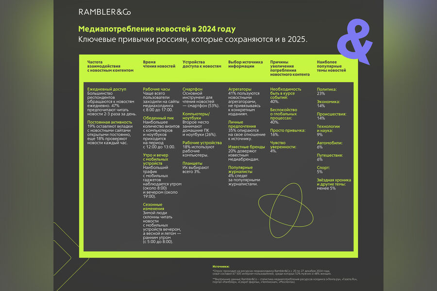 Большинство россиян ежедневно обращались к новостным ресурсам в 2024 году, причем почти пятая часть жителей страны постоянно держала открытыми вкладки с сайтами СМИ, а 18% заходили на них каждый час. Такие данные предоставили аналитики медиахолдинга Rambler&Co, изучившие, как россияне потребляли новостной контент в прошлом году. Исследование также выявило основные привычки медиапотребления соотечественников, которые сохранятся в 2025 году.