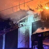 Пламя распространилось на верхних этажах здания, где расположен частный магазин.