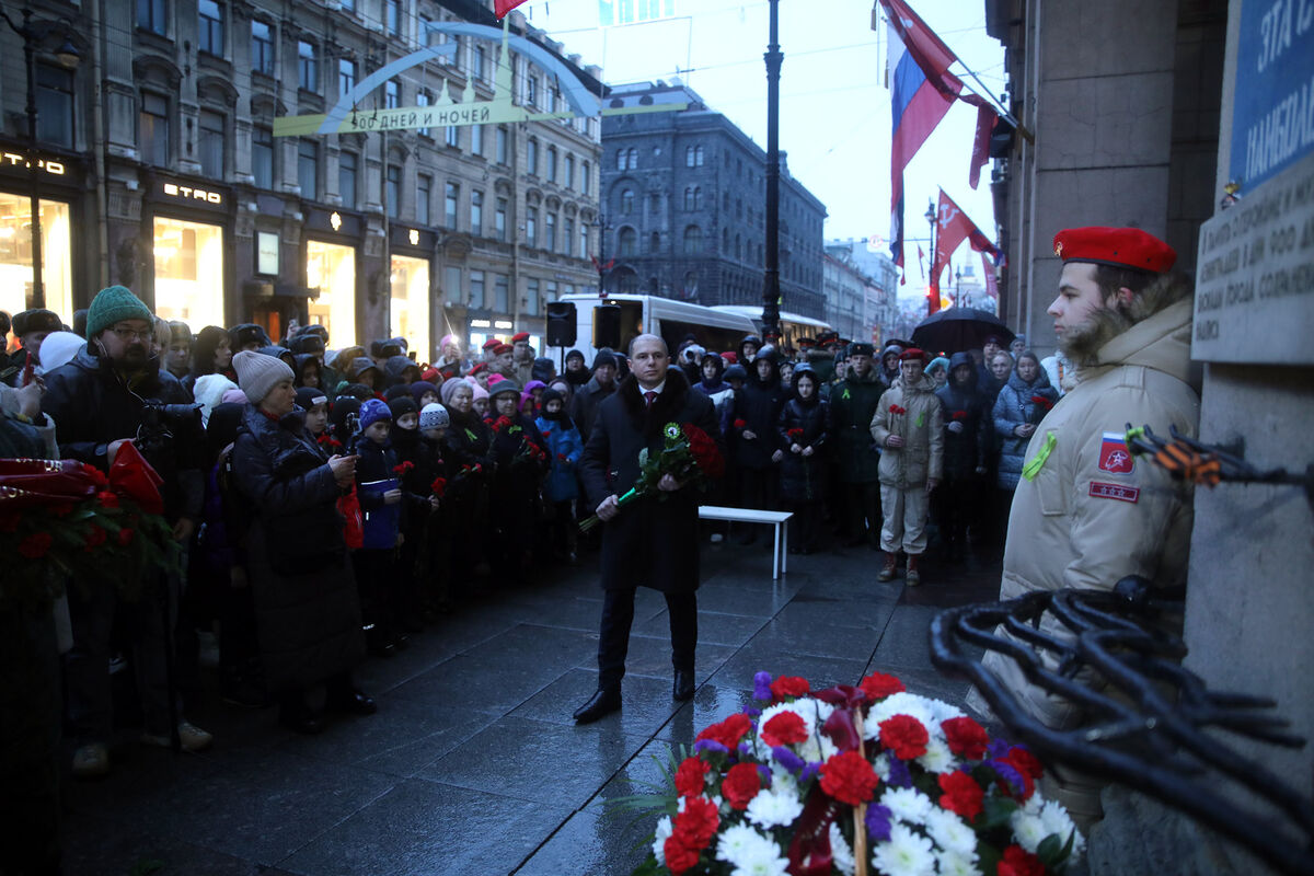 В Санкт-Петербурге на Невском проспекте прошла торжественно-траурная церемония возложения цветов к мемориальной доске «Героизму и мужеству ленинградцев». Об этом сообщает пресс-служба депутата Госдумы от Санкт-Петербурга, члена фракции «Единая Россия» Михаила Романова, участвовавшего в мероприятии.