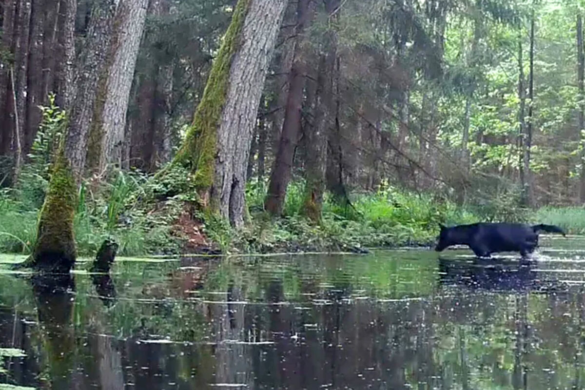 Первоначально эксперт установила камеру для изучения бобров, но впоследствии собрала кадры с черными волками, которые пересекали ручей.