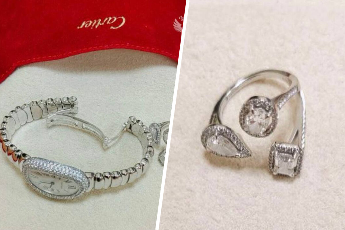 «Экспертиза установила, что часы Cartier Baignoire и кольцо Messika My Twin Trilogy изготовлены из золота 750 пробы и инкрустированы 323 бриллиантами», — уточнили в ФТС.