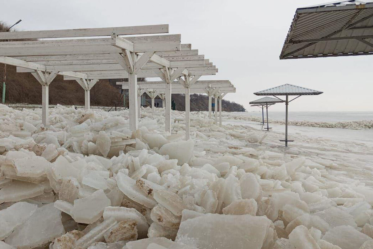 Ледяные глыбы разрушили инфраструктуру центрального пляжа Таганрога