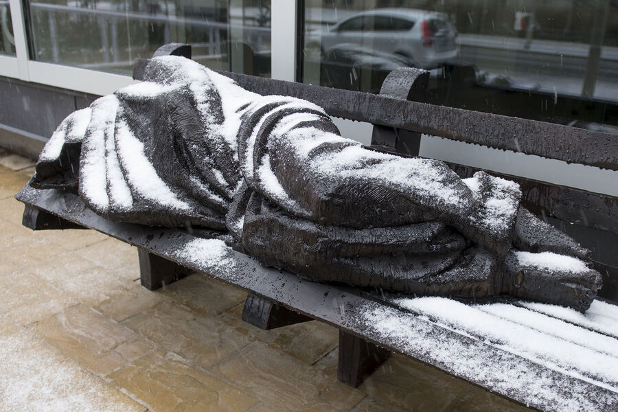 Сигнал о неизвестном, который якобы лежит без сознания на скамейке на улице Миодова, поступил в службу спасения вечером 19 февраля. На место происшествия немедленно отправили скорую помощь и стражей порядка. Звонившая женщина дождалась медиков и указала им на скульптуру «Бездомный Иисус» в виде человека, спящего на скамейке под покрывалом.