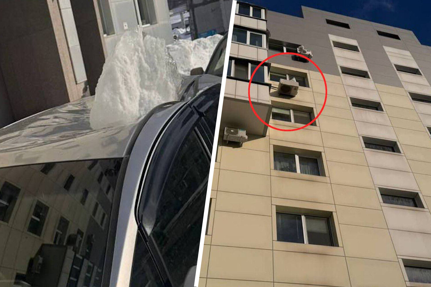 В Южно-Сахалинске огромная глыба льда упала с крыши и повредила припаркованный автомобиль, управляющая компания обвинила в произошедшем владельца одной из квартир. Об этом сообщает Telegram-канал Amur Mash.