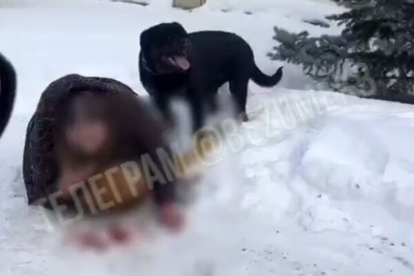 На кадрах с места инцидента заметно, как пострадавшая лежит на снегу, пытаясь защититься от животного. Ротвейлер тем временем стоит рядом, не отходя.