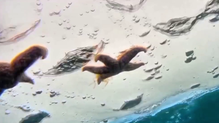 Приморский дайвер продемонстрировал морские звезды, запечатленные на внутренней стороне льда. Эти кадры были опубликованы в Telegram-канале «Владивосток».