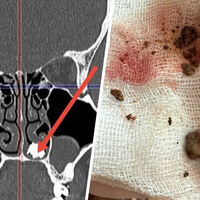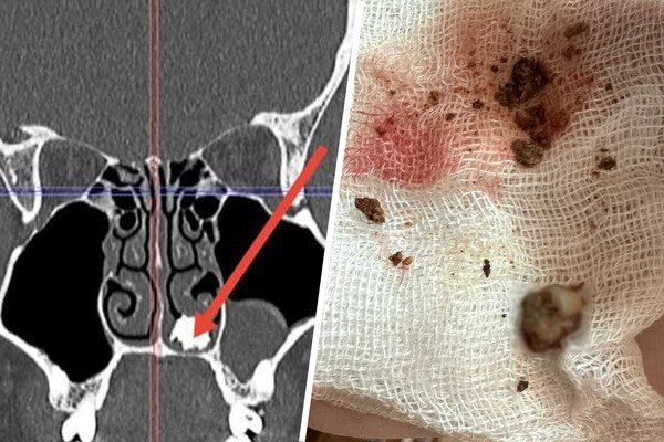 Во время нее отоларингологи извлекли из носа молочный зуб, покрывшийся грибковым содержимым — медики предположили, что зуб находился в носу много лет.