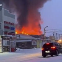 По словам очевидцев, ЧП предшествовали три взрыва. Что хранится в горящем сооружении, не известно, однако оно полностью объято пламенем. Площадь пожара пока не названа. Сейчас на месте происшествия работают спасатели МЧС.
