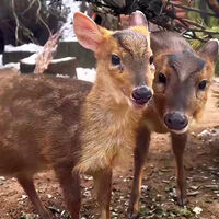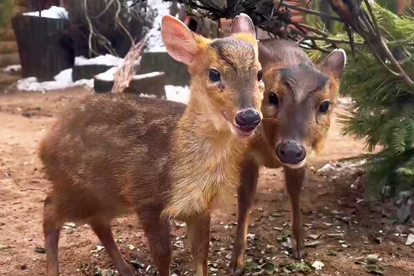 В Ленинградском зоопарке у пары китайских мунтжаков (небольших оленей, обитающих в Китае и на Тайване) родился детеныш. Об этом рассказали в Telegram-канале учреждения.