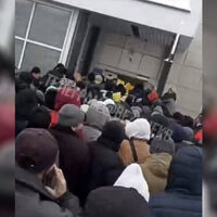 На кадрах с места инцидента заметно, что десятки людей хотят попасть в здание, но почему образовалась такая большая очередь, не уточняется.