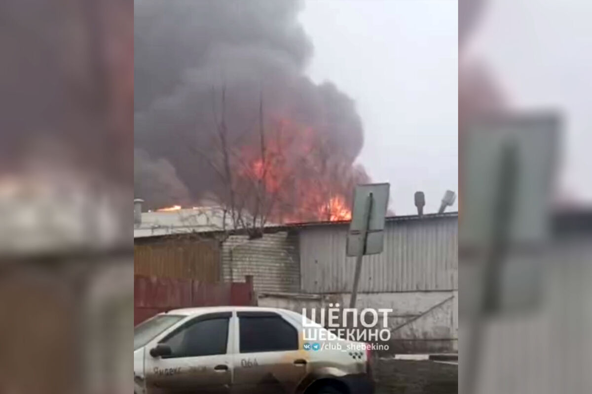 В Шебекино Белгородской области произошел пожар на промышленном предприятии. Видео с места инцидента опубликовал Telegram-канал «Шепот Шебекино».
