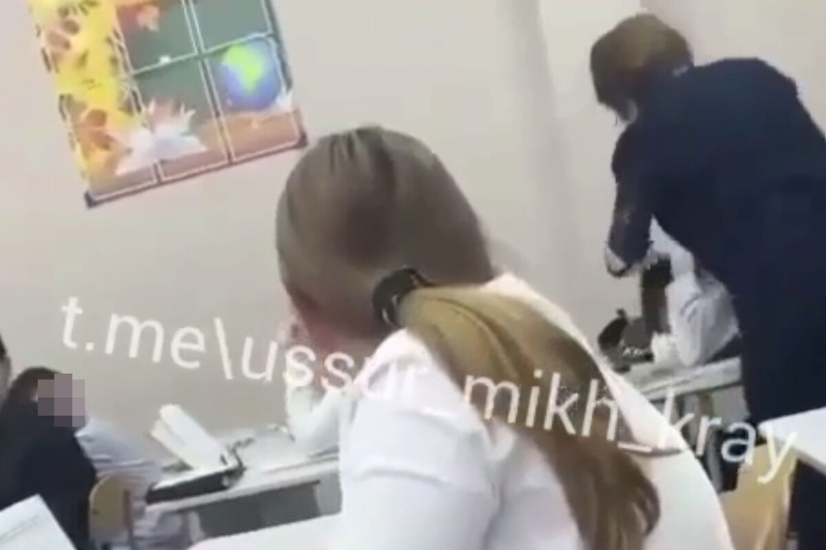 На кадрах педагог стоит над школьником и несколько раз, судя по звукам, ударяет мальчика рукой. При этом женщина кричит на ребенка и называет его «самой натуральной скотиной».