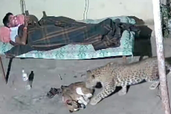 В Индии леопард напал на спящую на улице собаку, пока ее хозяин лежал рядом на кровати и смотрел что-то в телефоне. Инцидент зафиксировала расположенная во дворе камера. Позже видео опубликовало издание Need To Know.