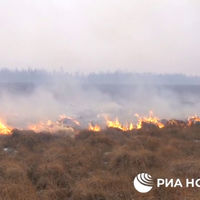 Пожарные борются с палом травы у объездной трассы в Уссурийске в Приморском крае. Из-за густого дыма видимость на дороге практически нулевая, пишет РИА Новости.
