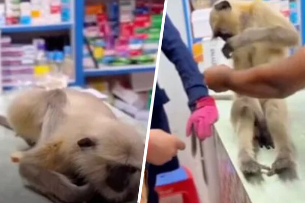 «Раненая обезьяна забрела в местный район и, увидев аптеку, бросилась туда за помощью», — добавили местные жители.