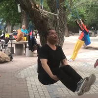 Еще одна экстремальная практика — подвешивание на деревьях с помощью веревок, закрепленных под подбородком. Некоторые участники раскачиваются из стороны в сторону, утверждая, что это помогает при проблемах с шейными позвонками.