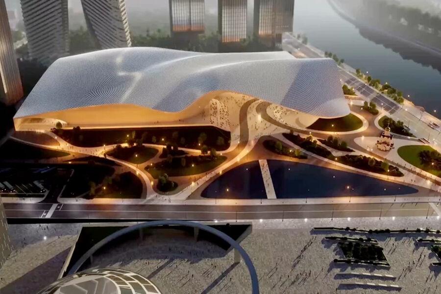 Фасад здания сделают мультимедийным. Он будет подстраиваться под различные события и тематически меняться. На территории вокруг здания сделают ландшафтный парк.