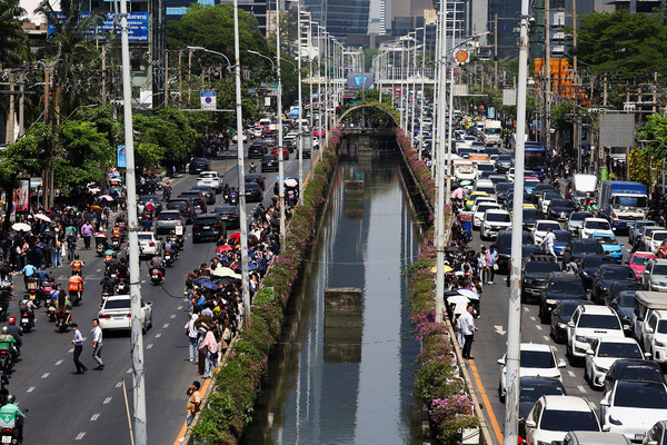 В Бангкоке вода с крыши здания смыла толпу людей во время землетрясения