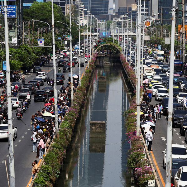 В Бангкоке в Чайна-тауне во время землетрясения вода из бассейна на крыше здания смыла толпу людей на улице. Видео активно распространяется в сети.