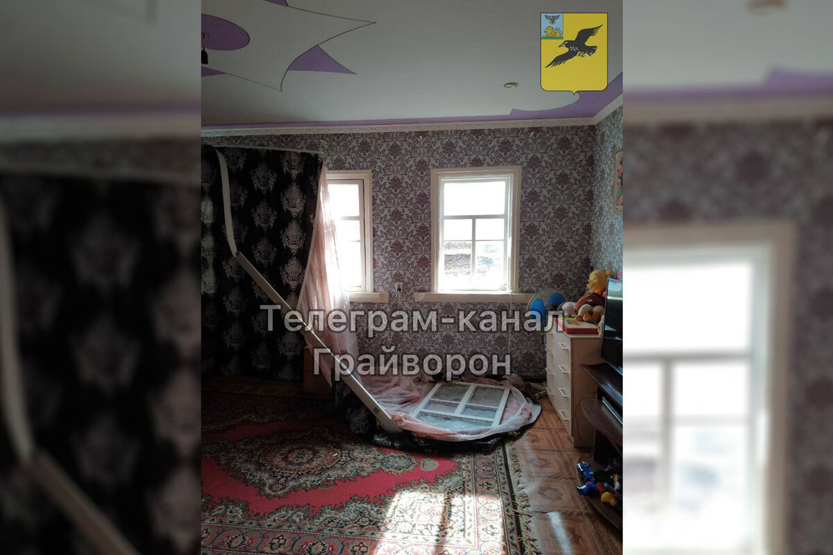 Предположительно, фотография и видео были сделаны в доме пострадавшего заместителя главы администрации Грайворонского округа Вячеслава Радченко. На них видно, что в результате удара в здании оказались выбиты окна и повреждена мебель.