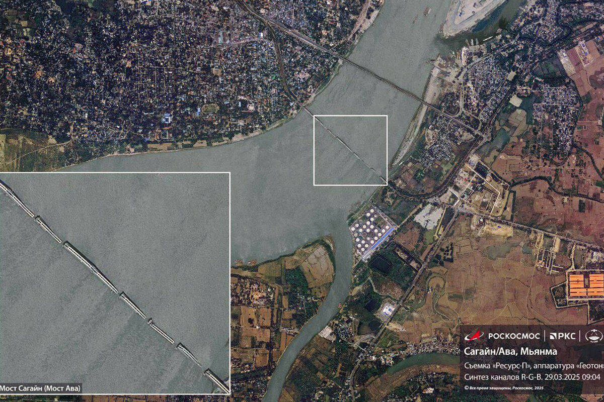 «Роскосмос» опубликовал в своем Telegram-канале спутниковый снимок города Сикайн в центре пострадавшей от землетрясения Мьянмы.