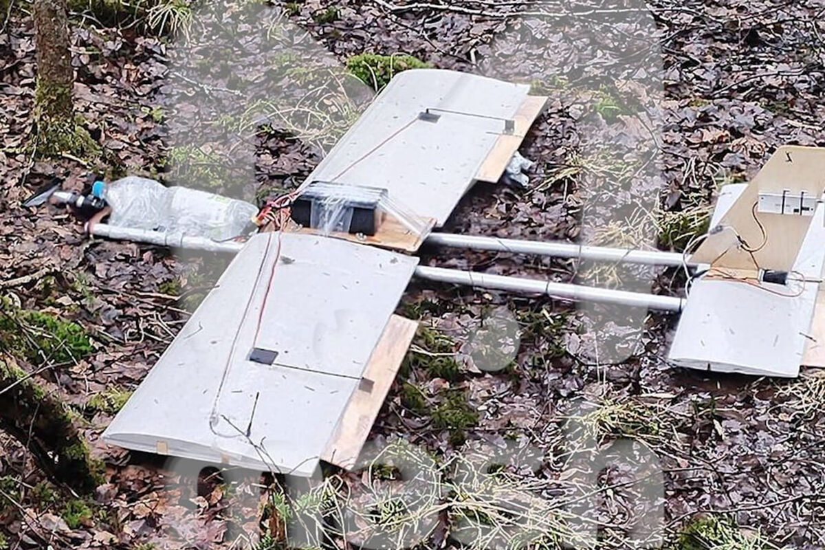 По информации журналистов, беспилотный летательный аппарат (БПЛА) нашли в лесополосе. Устройство состоит из фанеры и бутылки воды, при этом к нему с помощью скотча был прикреплен электрический двигатель с батареей.