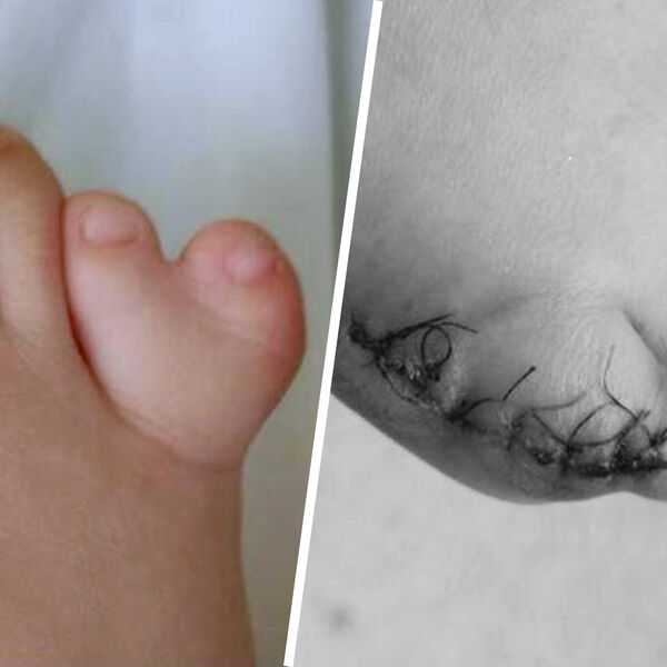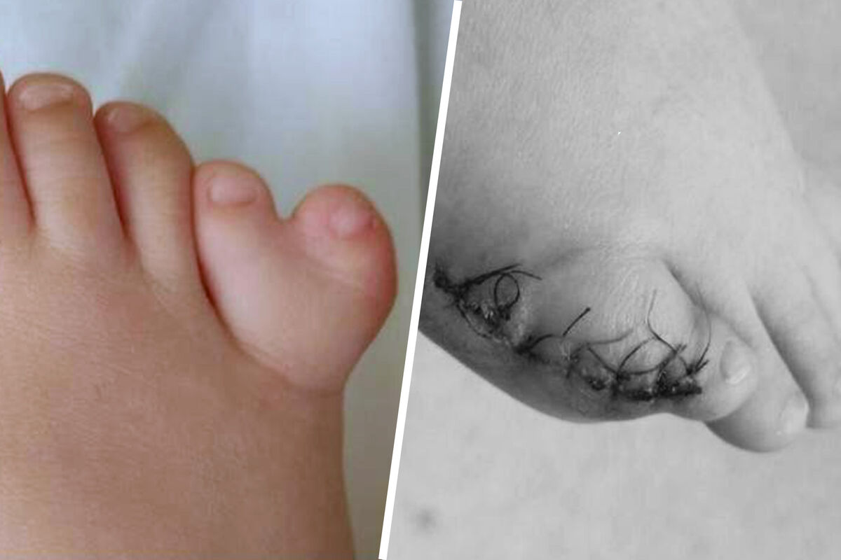 В больницу обратились родители, которые заметили, что из-за шестого пальца на ноге ему сложно подбирать и носить обувь. На фото заметно, что «дополнительный» мизинец почти полностью соединился с пятым пальцем.