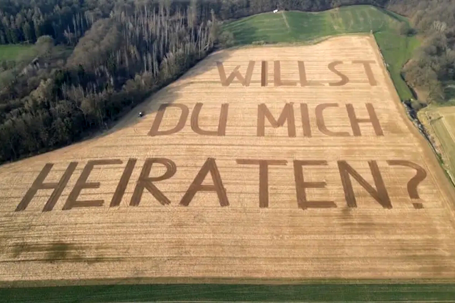 Паскаль Леккер, 25-летний фермер из Нижней Саксонии, решил сделать своей девушке предложение, от которого она не смогла бы отказаться. Он вспахал 12 гектаров земли и, прицепив к трактору культиватор, оставил на поле вопрос для будущей жены: «Ты выйдешь за меня замуж?».
