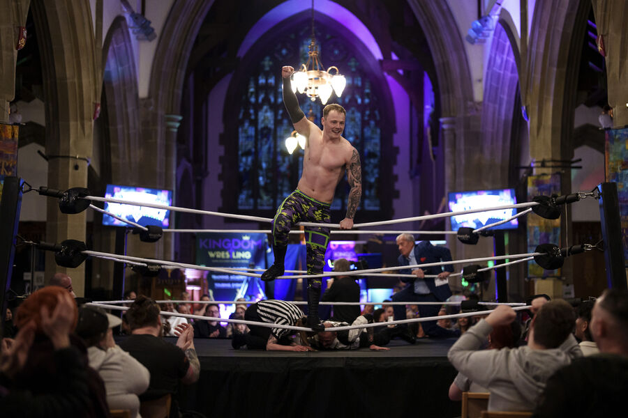 Проект под названием Wrestling Church появился в 2022 году благодаря Гарету Томпсону, 37-летнему проповеднику и рестлеру. Мужчина рассказал, что однажды этот спорт и Иисус спасли его жизнь. По его мнению, рестлинг и христианство отлично дополняют друг друга, ведь происходящее на ринге напоминает библейские истории, такие как борьба Давида и Голиафа. До 2024 года организованные им бои проходили в бывшем ночном клубе, переоборудованном в церковь, но в итоге энтузиасту позволили проводить их в англиканской церкви Святого Петра в Шипли, Англия.