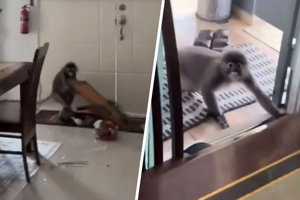Необычный случай произошел в малайзийском штате Малакка. Черноногий серый лангур проник в частный дом и попытался украсть зеркало. На кадрах видно, как растерянные хозяева пытаются прогнать незваного гостя. Мужчина бросает в животное подушку, но лангур продолжает упорно тянуть зеркало к выходу. Ситуация разрешилась, когда одному из домочадцев удалось перехватить зеркало и закрыть дверь, оставив обезьяну с пустыми руками.