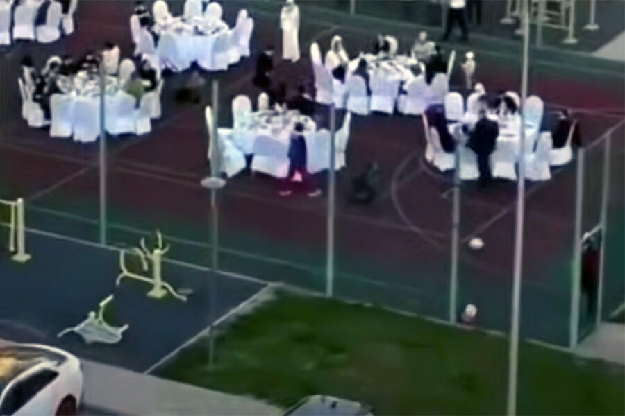 Предполагаемое застолье мигрантов на спортивной площадке в Москве сняли на видео