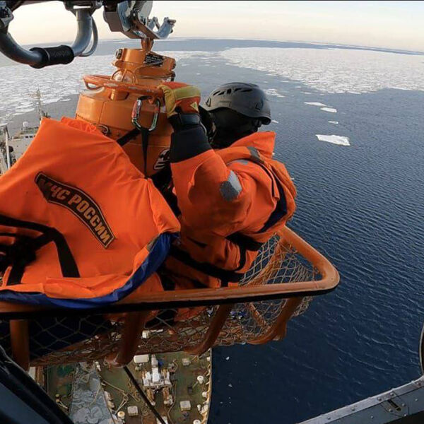 С помощью бортовой лебедки сотрудник МЧС в люльке спустился на палубу и поднял пострадавшего на борт. Моряка доставили в больницу, где ему оказывают медицинскую помощь.