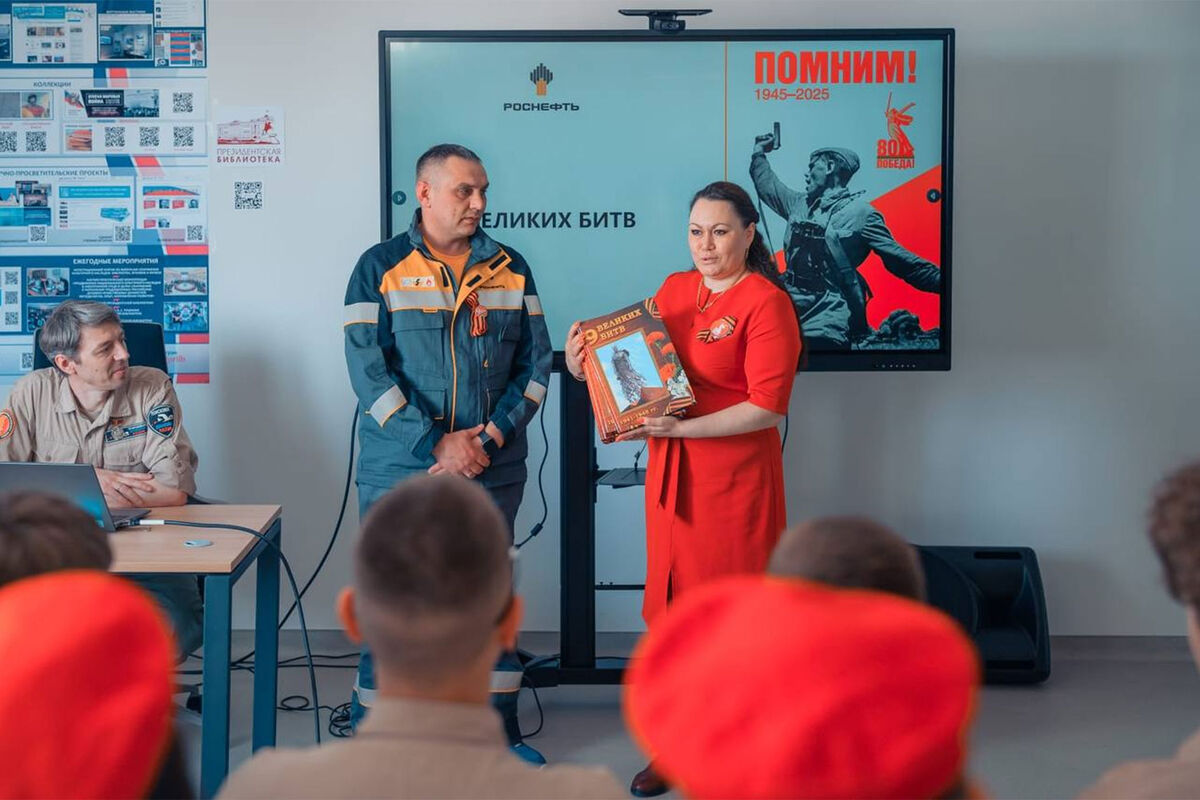 Волонтеры «Тюменнефтегаза» (входит в структуру «Роснефти») в честь 80-летия Победы в Великой Отечественной войне провели урок мужества для школьников образовательного центра «Полярная звезда», расположенного в поселке Тазовский Ямало-Ненецкого автономного округа, сообщает пресс-служба компании.