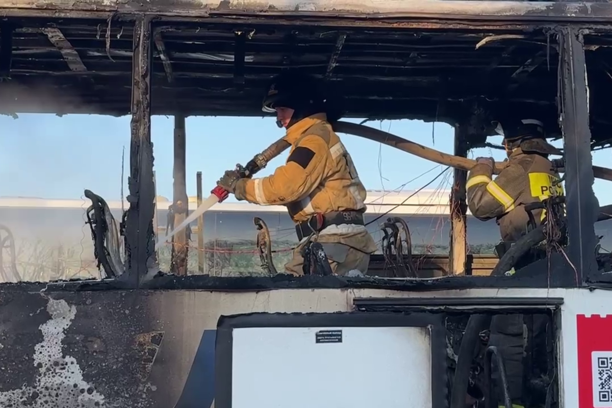 В результате пожара выгорела половина одного автобуса, также огнем частично повреждены два рядом стоящих автобуса, подчеркнули в ведомстве. Пожар был ликвидирован на площади 40 квадратных метров.