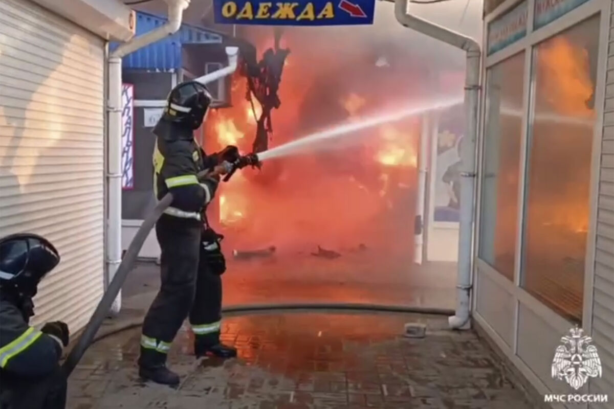 Пожар произошел на рынке в городе Геническе, расположенном в Херсонской области. Об этом сообщила пресс-служба МЧС РФ в Telegram-канале.