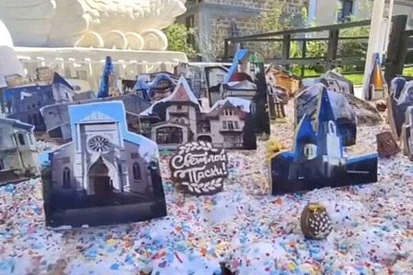 Кулич украсили пряниками с изображениями знаковых мест полуострова. По словам Жиленко, попробовать пасхальную выпечку могут все желающие абсолютно бесплатно при посещении парка миниатюр.