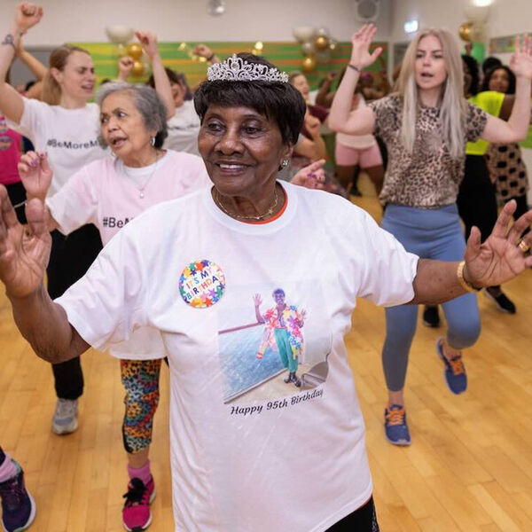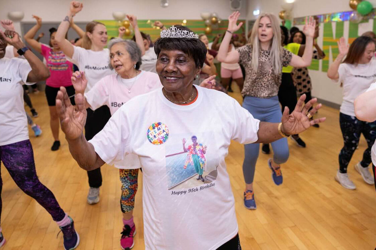 Мэри Марсон из Лондона в 94 года трижды в неделю посещает занятия зумбой, демонстрируя удивительную энергию и гибкость.