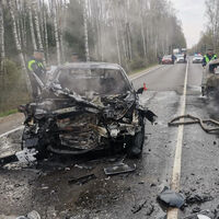 Инцидент произошел на 97-м километре автодороги Москва – Дмитров – Дубна. Две машины столкнулись на дороге, после чего воспламенились.
