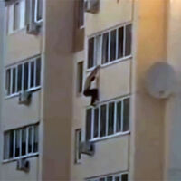 На кадрах с места инцидента заметно, как мужчина выпал из окна и зацепился за карниз, пытался забраться вверх, но в какой-то момент не удержался и спикировал вниз.