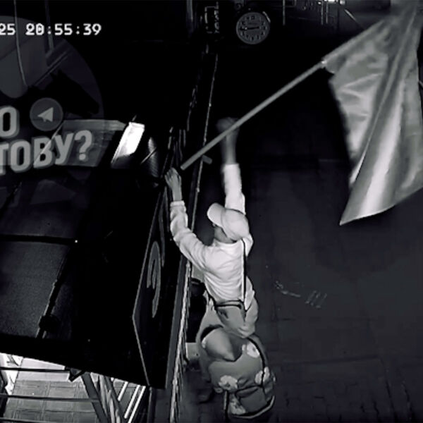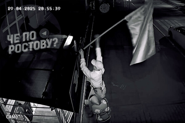 Кража флага произошла вечером 29 апреля у дома №111 по улице Ленина. На камеры попал момент, как двое мужчин подошли к зданию, один подсадил другого, и тот вытащил флаг из флагштока.