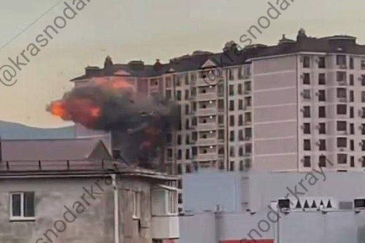 Момент атаки украинского беспилотника на дом в Новороссийске попал на видео