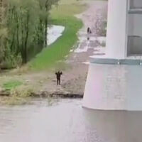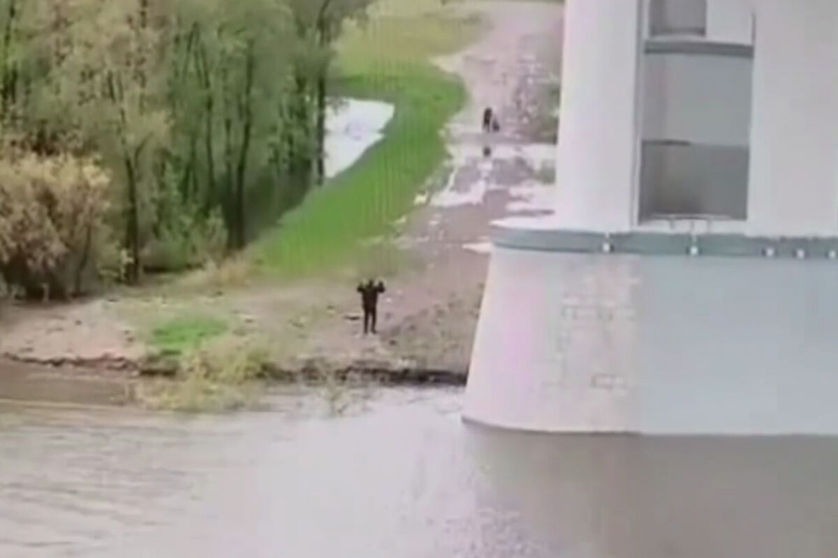 На них видно, как человек падает в реку, после чего подплывает к берегу и самостоятельно выбирается на сушу. По информации очевидцев, за несколько минут до ЧП мужчину видели ехавшим на электросамокате по дороге.
