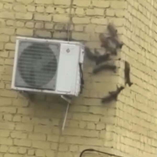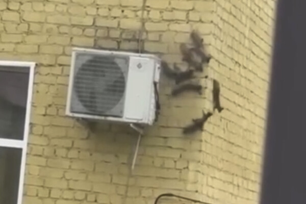 Мать-белка поселилась возле родильного дома в 2023 году, а теперь вернулась к зданию с потомством, которое активно перемещается по стенам больницы.