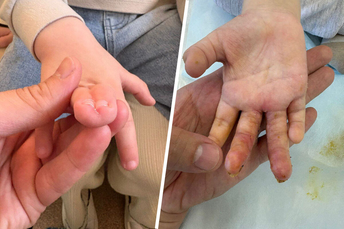 Детский травматолог провел уникальную трехэтапную операцию: разделил сросшиеся пальцы с кожной пластикой, удалил избыток костной ткани и скорректировал положение ногтевых фаланг. Особенностью вмешательства стало выполнение кожной пластики без забора ткани с других участков тела.