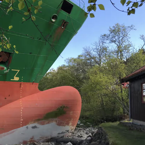 По словам живущего внутри мужчины, он проснулся рано утром после звонка соседей. Посмотрев в окно, он был «весьма удивлен, увидев большой корабль».
