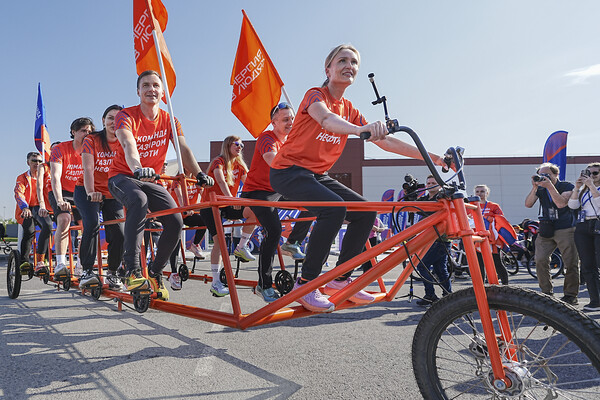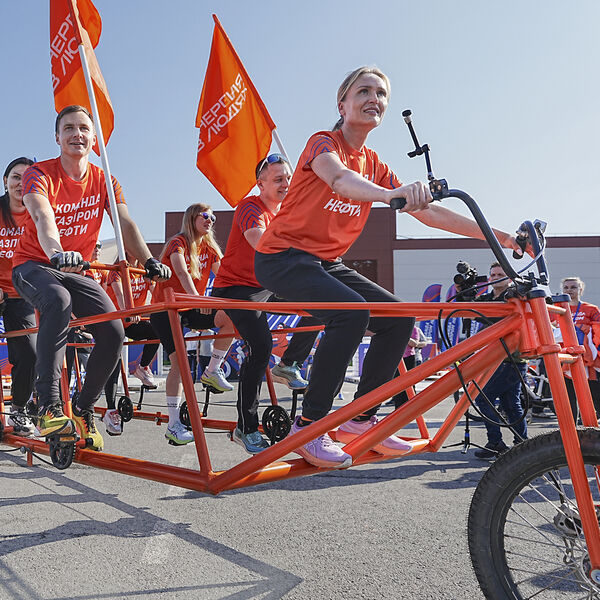 Шестиметровый велосипед создали специально для командного заезда. Он проехал во главе велопарада под управлением одновременно 11 человек – участников команды «Газпром нефти». Они посвятили свою велоакцию популяризации здорового образа жизни. Эксперты Книги рекордов России, посетившие фестиваль, признали экспериментальную конструкцию самым большим в истории многоместным велосипедом на трех колесах.