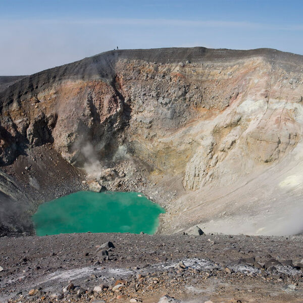 Вулкан Эбеко высотой 1156 метров расположен в 6 км от Северо-Курильска на острове Парамушир. Он является одним из наиболее активных вулканов Большой Курильской гряды.