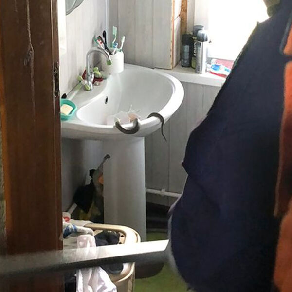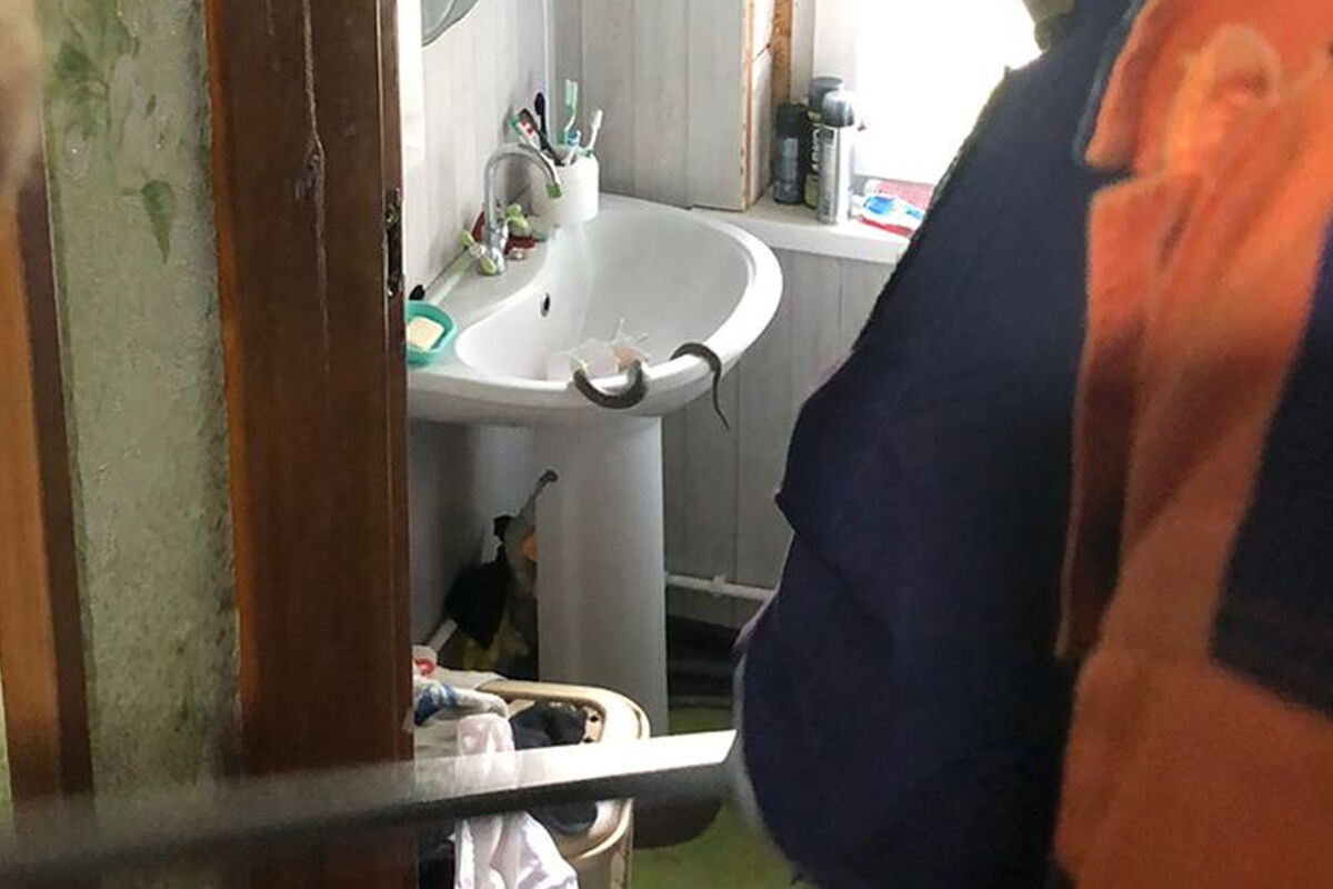 Проживающий в Тихорецке мужчина рассказал, что хотел зайти в туалет, но обнаружил, что в уборной появилась змея. Рептилия забралась в раковину и устроилась там кольцами. Хозяин дома заметил змею из-за торчавшего из раковины хвоста и дальше пройти не решился.