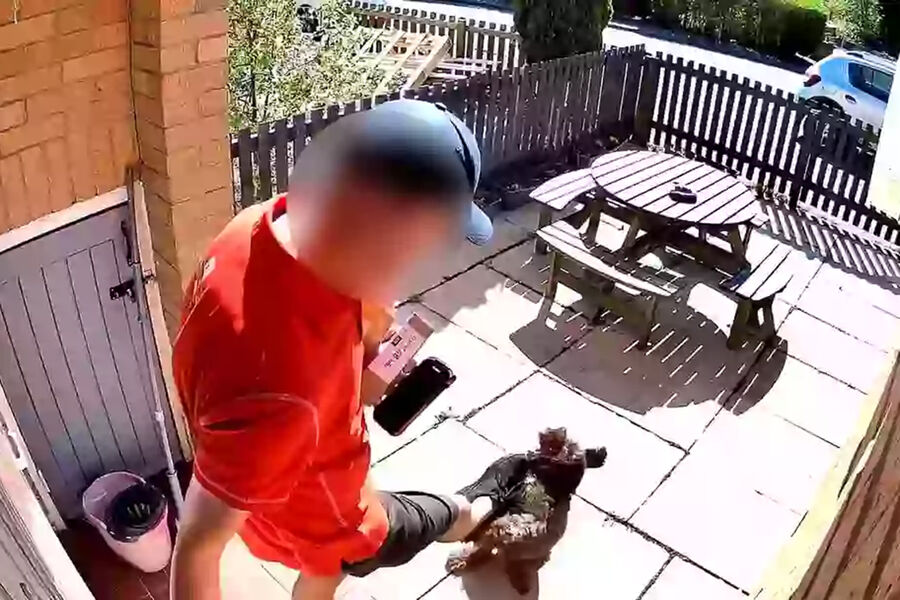В Англии почтальон избил собаку клиентки и попал на камеру, пишет LADBible.